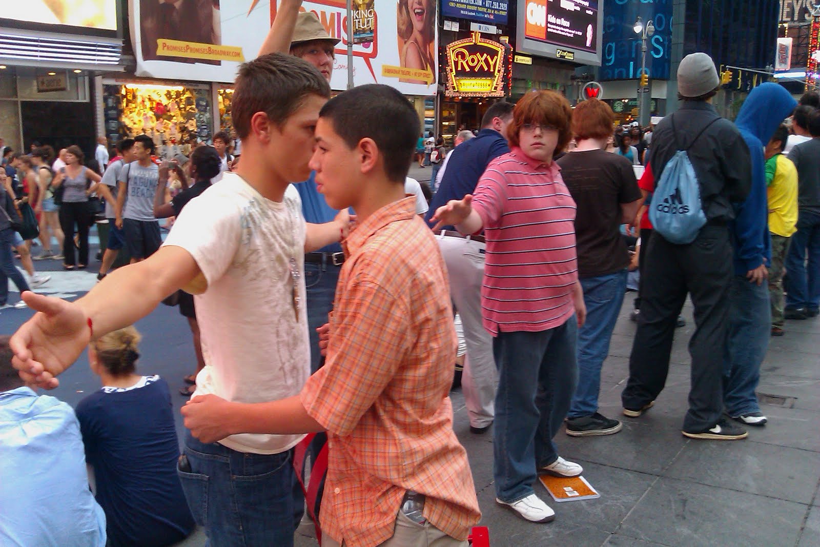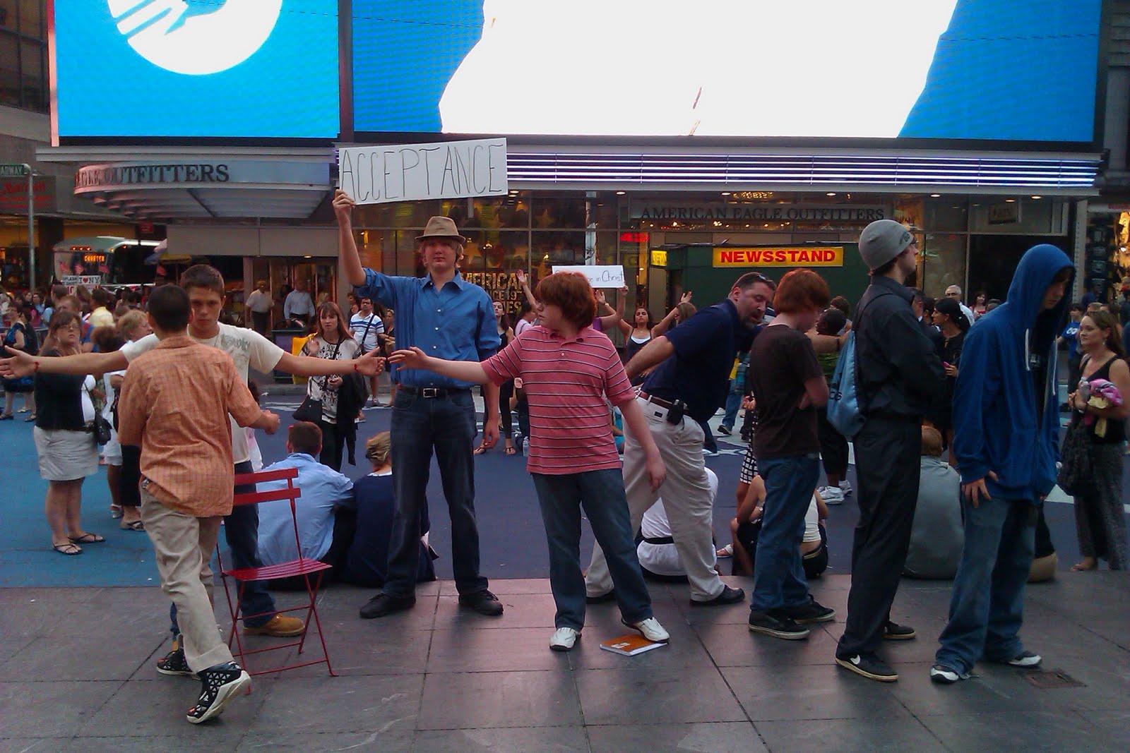 Tonight at 6:20 (or so), the TAM Conservatory ( http://theTAMjam.com), where I'm teaching and directing this week, will be dividing into groups and creating contrasting tableaux on Times Square. Someone will hold up a sign and the students and faculty will create a tableau based on that word. Then ...